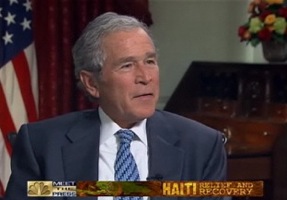 The television appearance for President Bush only happened under strict conditions that topics never veered off of humanitarian aid in Haiti. Writing for the NY Times, Peter Baker reports: