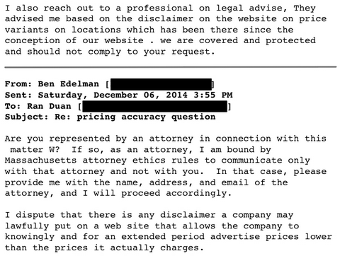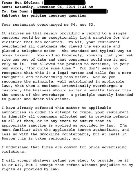Duan was very accommodating of Edelman’s requests, even taking down the site temporarily so he could update the prices. He apologized for the confusion again and said he has no problem paying the $12. And then there was this exchange: