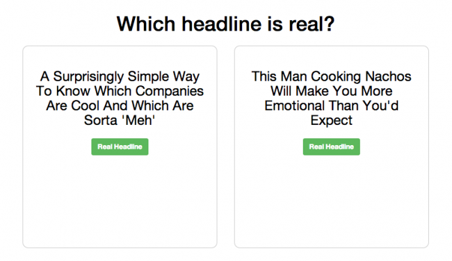 If you chose, “This Man Cooking Nachos Will Make You More Emotional Than You’d Expect,” the site will tell you “Sad, but true. It is a real headline.” It then suggests you can “Read it, if you must,” with a link to the original story on BuzzFeed.