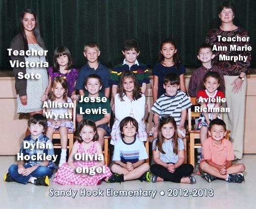 The photo also includes victims Dylan Hockley, Allison Wyatt, Jesse Lewis, Avielle Richman, all 6 years old.