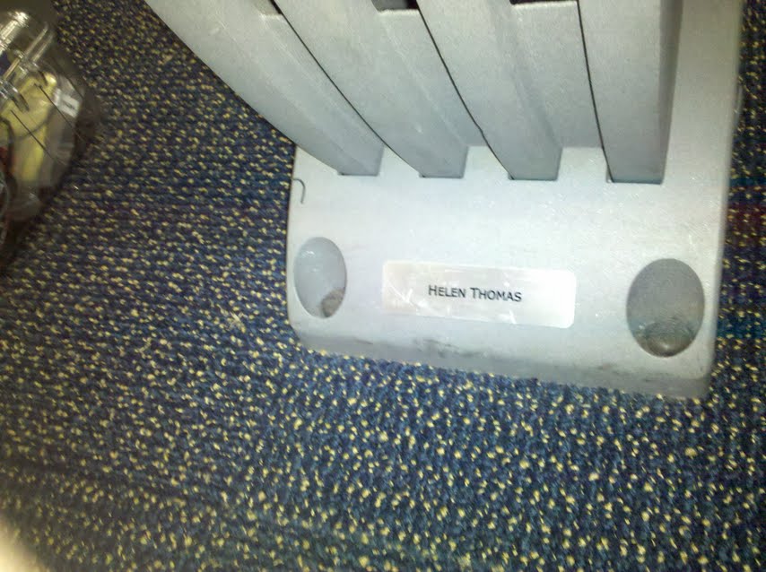 Last August, Mediaite reported that Helen Thomas‘ nameplate had disappeared from her famous front-row-center seat in the White House briefing room. At the time, sources within the White House Correspondents Association and the White House press office were baffled about the disappearance.