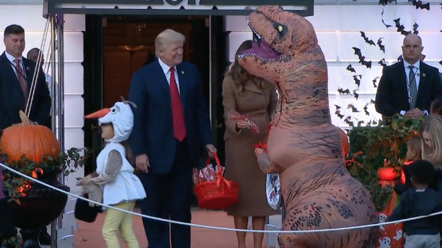 There’s been a lot of news pertaining to Donald Trump today, but it is still the end of October, and that meant the president would eventually walk outside and embrace the Halloween spirit.