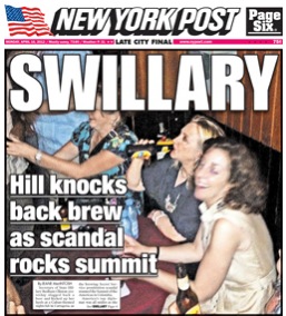 Clinton’s photos quickly made a splash Monday morning, with the New York Post printing the headline, “SWILLARY.”