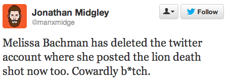 Needless to say, people went nuts over the photo, leading Bachman to delete her Twitter account. Below are some of the more… colorful reactions to Bachman’s photo.