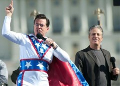 WaPo conducted a (presumably real) poll with ABC News and ‘discovered’ that Stewart leads in all categories by a wide margin. The results are revealed in a sort of strange piece on WaPo that, possibly in an attempt to be funny, tries to sound serious about the potential candidacy of the comedians.