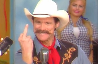 “Cold Dead Hand” is full of blunt provocations, from the use of conservative NRA icon Charlton Heston to the trope that gun nuts are compensating for tiny penises. Backed by a three-piece band consisting of gun victims John Lennon, Abraham Lincoln, and Mahatma Ghandi, Carrey’s cowboy crooner taunts Heston on the set of Hee-Haw by explaining that “the angels couldn’t take him up to Heaven as he planned,” because “they couldn’t pry that gun from his cold, dead hand.”