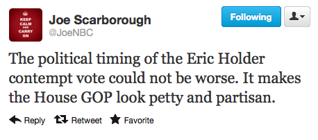 Joe Scarborough: ‘Political Timing’ Of Holder Contempt Vote Makes GOP Look ‘Petty And Partisan’