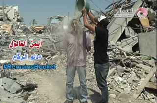 Admitting that he didn’t have a way to freeze a bucket of water, Aloul drew inspiration from the destroyed buildings around him. “It came to my mind that it’s good idea to show the whole picture — how Gaza looks now, rubble, destruction, cement with sand, small rocks,” he said in a video slowly gaining internet traction according to NBC News. (As of now, the Rubble Bucket Challenge Facebook page has nearly 2200 likes and actually exists.)