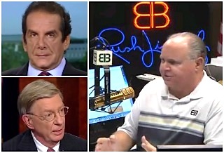 On his radio show Monday, Rush Limbaugh questioned the conservative loyalty of Fox News commentators Charles Krauthammer and George Will after new revelations from Krauthammer’s heavily-promoted new book, Things That Matter: Three Decades of Passions, Pastimes and Politics, currently residing at #1 on Amazon.