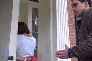 An elderly man, seemingly the husband of the woman inside, approached the front steps to ask, “What are you doing here?”
