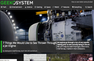 Today we enter the world of 2013 with our first major redesign beginning on Geekosystem.com and sponsored by GE. This new design will likely be implemented across all of our sites in the near future. The new layout is cleaner, the social media sharing tools more enticing, the sizing of images more consistent and the lead story far larger, but there are three particularly important elements: