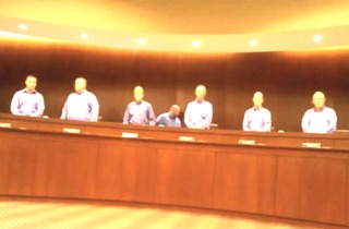 Richardson had a video camera rolling when everyone else stood up for the invocation. Mayor Rees told him to stand up, but Richardson refused. Rees left it alone, until Richardson said he didn’t have to stand for the Pledge of Allegiance. That really set the mayor off, and he ordered the police to escort Richardson from the room.