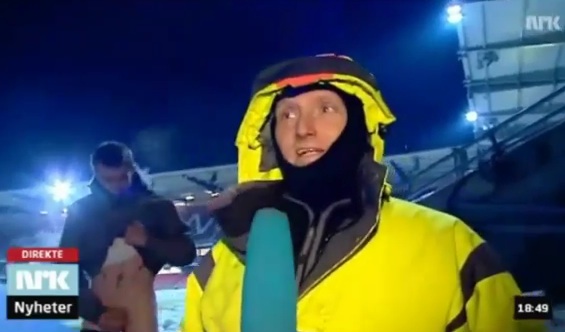 Here’s what we know: A Norwegian News program was filing a live report “about problems with quality of the soccer field related to the freezing cold temperatures of -15C (5F)” (at least according to the YouTube poster of the video below) We also know that a young man was not deterred by the frigid weather in his strange and inexplicable effort to ostensibly expose his nether regions on live television. People are weird, all over the world.