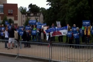 “Markey supporters protesting POTUS outside the campaign event,” Thomas wrote on Twitter.