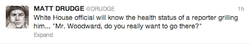 Drudge hasn’t been the only one expressing outrage — if not quite as hyperbolically — over the issue this morning. Over at MSNBC, Chuck Todd questioned lack of anger from Democrats while Willie Geist deemed it “tyranny.” Glenn Beck, meanwhile, reminded that his site had covered this problem much earlier.