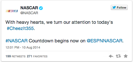— NASCAR (@NASCAR) August 10, 2014