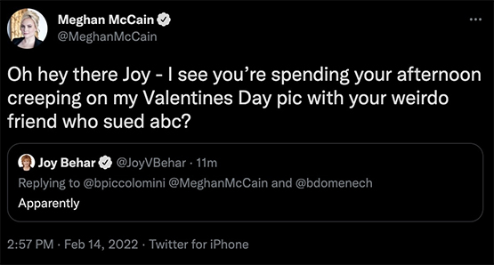 — Meghan McCain (@MeghanMcCain) February 14, 2022