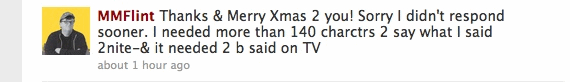 A week after Countdown host Keith Olbermann and guest Michael Mooresparked a Twitter protest over their dismissive treatment of rape allegations against Wikileaks founder Julian Assange, Moore made an appearance on The Rachel Maddow Show in which he failed to address the protest directly, but made their imprint obvious in his transformed rhetoric on rape accusations. In a crowning irony, the man whose zeal for transparency-God Julian Assange started this protest finally made direct acknowledgement of it…in a private Twitter message to #MooreAndMe creator Sady Doyle.