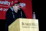 During a talk to promote his new book, Here Comes Trouble, liberal firebreather Michael Moore told an audience of college students at Bunker Hill Community College to “reject this vision of America that has been thrust upon us,” and that to fix it “will require a rumble.”