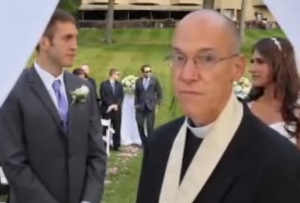 There is a noticeable look of discomfort on the bride and groom’s faces throughout the video, most likely because they kind of wanted the photographers to get shots of them during the ceremony. But Father Luddite apparently wanted no part of it. Here’s how the awkward conversation broke down: