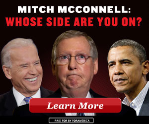 The group has placed ads online in Kentucky, as well as nationally on FoxNews.com, the Drudge Report, and the Daily Caller. ForAmerica asks McConnell, “Whose side are you on?”