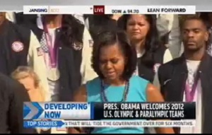 Well, MSNBC anchor and Jansing and Co. host Chris Jansing channeled our gaffe-y but lovable Vice President this morning when she tossed to commercial with a scene from a White House event honoring U.S. Olympic and Paralympic athletes. Describing the scene, Jansing said “This is a picture now of the South Lawn of the White House, and a big good-looking group behind First Lady Michelle Obama and the President, and Joe Biden as well. These are the U.S. Olympic and Paralympic athletes, and I have one question. Is Michelle Obama going to challenge them to a push-up contest? We will be right back.”