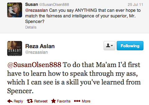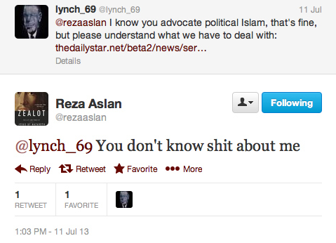 Muslim author Reza Aslan seemingly reached Internet stardom this past week due to a controversial Fox News online interview about his new book Zealot. Despite his scholarly demeanor in television appearances, it turns out Aslan is rather combative on the Twitters.
