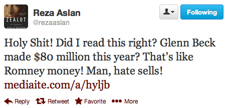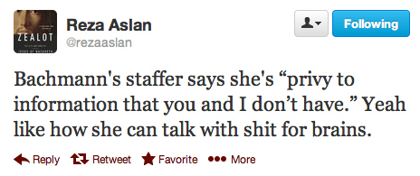 BuzzFeed’s Andrew Kaczynski dug in and found plenty of examples of Aslan cussing out his critics, fighting with other writers, and taking stabs at major conservative players like Glenn Beck and Michele Bachmann.