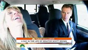 NBC’s Today show correspondent Jamie Gangel got to spend a day with Sen. Scott Brown – I know right?! – and she totally made the most of it. They drove around in his famous truck, he winked at her. Honestly, one of those famous, sexy Scott Brown winks.