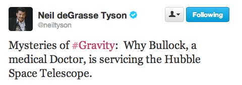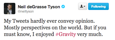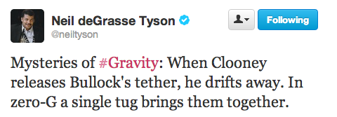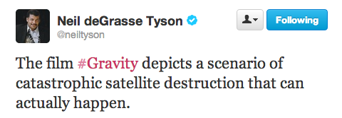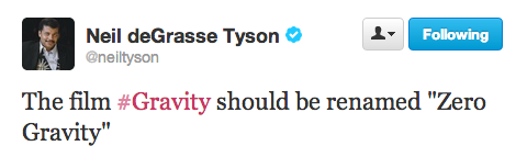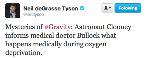 It was only a matter of time before America’s most-beloved astrophysicist Neil deGrasse Tyson weighed in on the weekend’s box office winner Gravity. The director of the Hayden Planetarium and frequent scientific expert on shows like Real Time with Bill Maher, went on a devastating Twitter rant Sunday to outline everywhere the film went wrong.