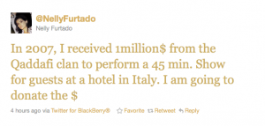 Nelly Furtado Tweets That She’ll Donate The $1 Million She Received To Perform For The Gaddafi Clan