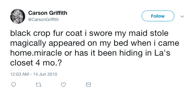 Next up, Carson Griffith, who joins new Gawker as Editorial Director. For Griffith, Splinter did some old school Gawkering, digging back into her old tweets.