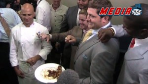 The recipe, Shrimp and Andouille sausage skewers, glazed with creole mustard, honey, and bourbon, is from New Orleans’ Commander’s Palace Restaurant, who contributed it to a cookbook that benefits the Zack Strief Dream Big Foundation. Chef Kass proclaimed them the best shrimp he’d ever eaten, and by the way he scarfed them down, CNN’s Dan Lothian seemed to agree.