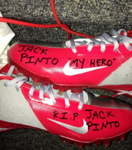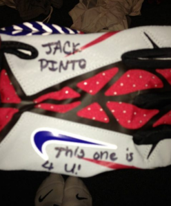 On Sunday, Cruz Tweeted pictures of the planned tribute, showing the words “Jack Pinto, My Hero” on one of his cleats and “R.I.P. Jack Pinto” on the other. On the back of his gloves, Cruz had written “Jack Pinto This one is 4 U.!”