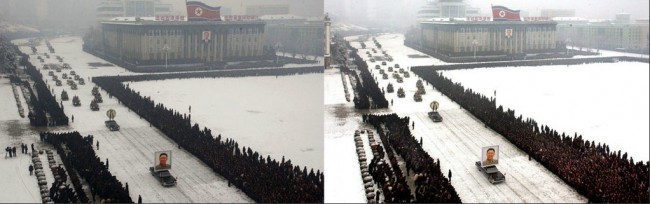 It was discovered on Wednesday that a photo displaying Kim Jong-Il‘s funeral procession, distributed by North Korea’s state news agency, had been doctored.
