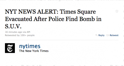 Times Square Shut Down; NY Times Reports: “Bomb Found In S.U.V.”