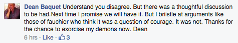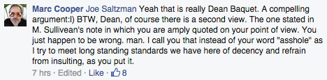 Baquet got wind of the Facebook post and fired back, calling Cooper an asshole: