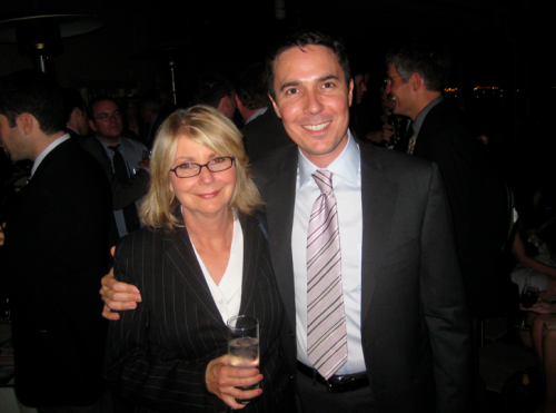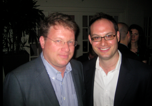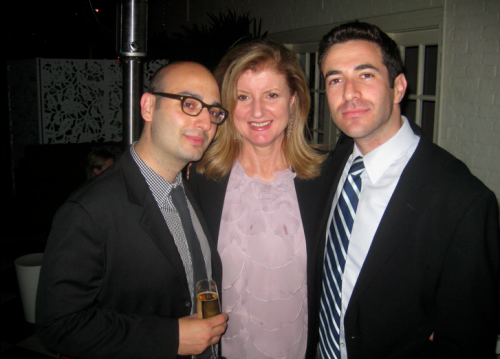Michael Calderone, late of Politico and soon of Yahoo!, and The Nation’s Ari Melber flank late arrival Arianna Hufington at the New Yorker party. There was some polite hovering while she confabbed with David and Susan Axelrod, who were, in turn, hovering to talk to me but I was very busy.