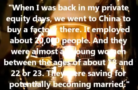 The video in question features Romney telling donors the story of his visit to a factory in China, and detailing the grueling conditions he observed: