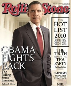 President Obama has given a lengthy interview to Rolling Stone publisher Jann Wenner for the upcoming issue of the magazine. The cover story is titled “Obama Fights Back” and boy does he ever. At least where Fox News is concerned. Here’s what he told Wenner regarding the network in what I think could be fairly termed a battle cry of sorts: