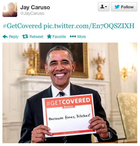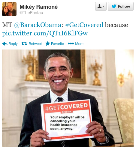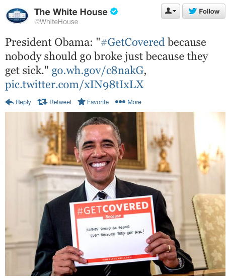 The first rule of social media is you had better be ready for anything you do to take off in a direction you didn’t expect. Case in point, the White House put out this photo of President Obama encouraging people to get covered under Obamacare with a special message he wrote out.