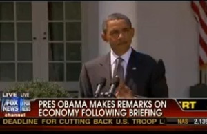 President Obama spoke on the White House lawn today to seek bipartisan support for a new small business stimulus bill that is currently opposed by GOP legislators. The President expressed confidence in the American people and the economy, but appeared to acknowledge the realities of the political climate in which he currently finds himself by not listing a number expensive ideas to spur the economy simply because he couldn’t get them through congress right now. As the President began to speak to the White House Press Corps, he appeared to have a false-start, given some sound issues with his microphone: not great optics for an otherwise embattled administration.