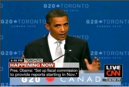 President Obama held a news conference earlier today following this weekend’s G-20 Summit in Toronto and had a few choice words for Republicans who have been opposing his every move in the last 18 months. In a longish response to a reporter who asked how Obama could build confidence that the US would meet its deficit reduction goals the president launched this shot across the Republican mid-term bow.