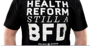One of the more positive outcomes of the Supreme Court’s decision to uphold President Obama‘s Affordable Care Act, at least from the perspective of the President’s supporters, is that the Obama reelection team has immediately shown a new willingness to campaign on the President’s signature legislative accomplishment. They’re currently selling “Health Reform Still A BFD” t-shirts, and in an email to supporters this morning, offered “I Like Obamacare” bumper stickers to donors.