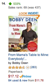 Deen’s family book sales have also benefited from the controversy, with son Bobby Deen‘s book From Mama’s Table to Mine experiencing a 533% surge in sales.