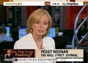 While there are people on both sides who might foresee the inside of a gym locker in the President’s future, Noonan’s current conclusions about the debt ceiling negotiations are based on complete nonsense. Noonan appeared on Morning Joe to defend her comments.