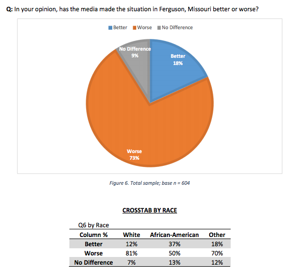 The St. Louis Post-Dispatch reported, 77% of white respondents believed that Brown was not “targeted because of his race,” while 65% of African-American respondents believe his race played a role in his death.
