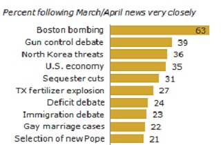In Pew’s News Interest Survey, the gun debate has led all other news stories since mid-January, peaking at 43% following the story very closely on Jan. 20, and holding at 37% in the past two surveys. The most recent study, taken April 25-28, understandably showed the Boston Marathon bombings at the top of the News Interest Index, with 63% of respondents following that story very closely. However, the percentage of Americans following the gun control debate very closely actually increased to 39% during that period, leading all other news stories. Anyone who tells you that Americans don’t really care about the gun debate is fooling you, and possibly themselves.