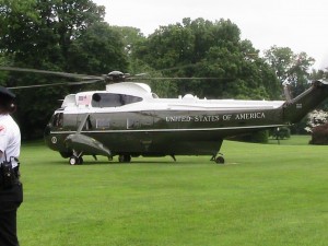 In an odd little item, ABC News is reporting that presidential helicopter Marine One was forced to land in an undisclosed location as it carried President Obama and daughter Sasha to Camp David for the weekend. According to White House Press Secretary Jay Carney, the diversion was due to a “bad weather call,” but the report goes on to say that the weather, from DC to Camp David, was far from frightful. Let the conspiracy theories begin!