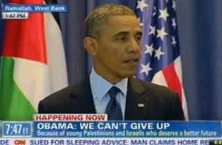 “I’ve returned to the West Bank because the United States is deeply committed to the creation of an independent and sovereign state of Palestine,” Obama continued. “The Palestinian people deserve an end to occupation and the daily indignities that come with it. Palestinians deserve to move and travel freely, and to feel secure in their communities. Like people everywhere, Palestinians deserve a future of hope, that their rights will be respected, that tomorrow will be better than today and that they can give their children a life of dignity and opportunity. Put simply, Palestinians deserve a state of their own.”